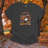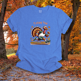 Celebrate the Thanksgiving tradition with a playful turkey-on-the-run design. Great for racers, joggers, or anyone who loves the holiday spirit (and the pie at the finish line).